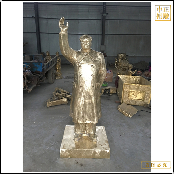 常見的毛主席名人雕塑銅像的款式多見毛澤東招手像,衣著軍大衣,招手望向遠處。毛主席塑像均為站像,姿態分揮左手和背手二種。細分化又有戴軍帽和不戴帽,穿軍大衣和大衣的不一樣。
