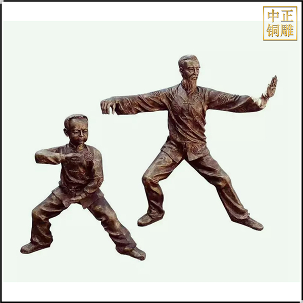 中正銅雕-祖孫打太極人物銅雕塑、祖孫打太極人物銅雕塑價格、祖孫打太極人物銅雕塑廠家,我公司集科研、開發設計、普通鑄造、一次性整體澆鑄、精密鑄造于一體。本公司技術力量雄厚,設備,不但重視中國青銅器原有的藝術風格,還繼承了文物原有的藝術品味,在繼承和發揚古老文化的同時,更深一步為新老客戶定身量制各種銅制、鐵制工藝品等產品,曾多次受到寺廟長老和美術學院教授的好評。